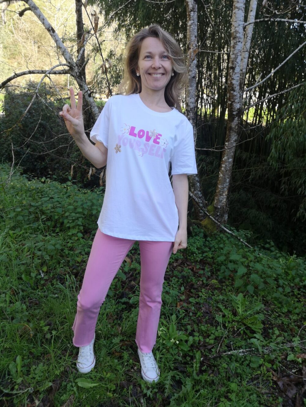 Tejido de algodón. Elastano. Serigrafia de rock sobre un fondo blanco.