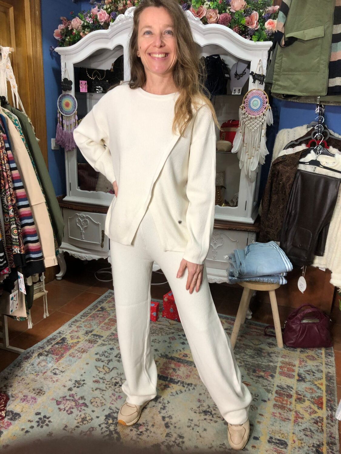 Jersey: escote redondo. Ribetes como por mitad de la blusa para darle un toque diferente.