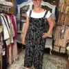 Tirantes con botón. Bolsillos. Lazo en la parte de abajo para quien lo quiera mas fruncido o mas suelto. Tejido de punto con elastano.